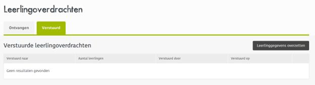 - Zodra de gegevens zijn verstuurd, kan de ontvangende school de overdracht bevestigen bij Ontvangen.