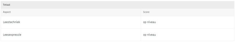 Leesexpressie is op niveau wanneer alle onderdelen minimaal op niveau zijn, met uitzondering van zinsmelodie en leestempo.
