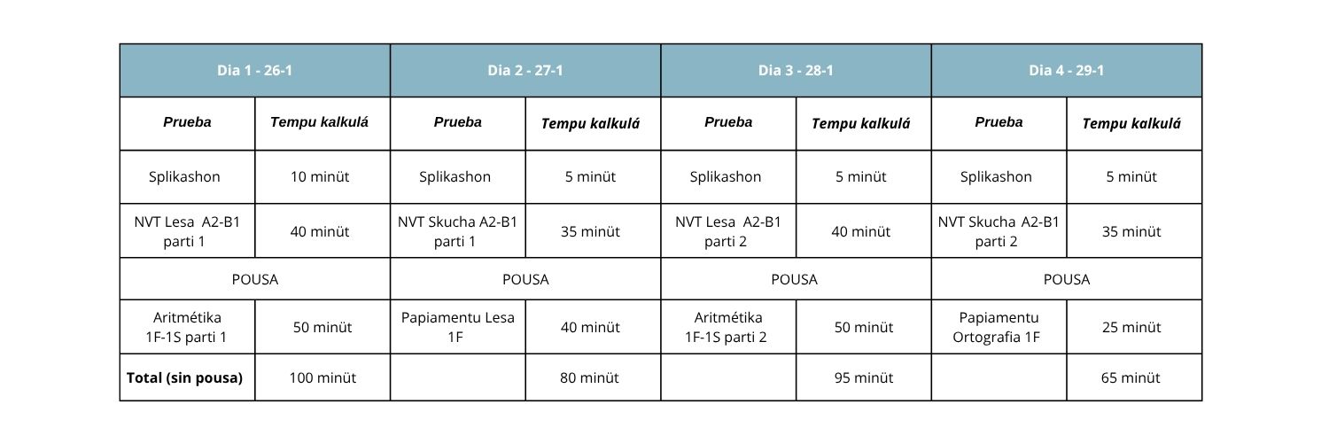 For di aña eskolar 2025-2026 skolnan den enseñansa primario na Bonaire ta disponé di nan propio doorstroomtoets. Ku e lei doorstroomtoets po ta obligatorio pa skolnan kompilá un konseho di skol den grupo 8 pa un alumno i eksaminá un doorstroomtoets. E konseho di skol ta intenshoná pa yuda alumnonan skohe e tipo di enseñansa sekundario mas adekuá.
