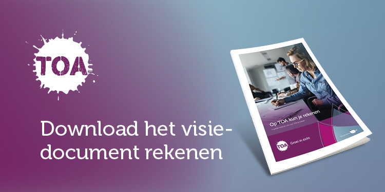 Om scholen te helpen een weloverwogen keuze te maken, hebben we het visiedocument ‘Op TOA kun je rekenen’ opgesteld. Hierin laten we zien welke keuzes wij bij Bureau ICE hebben gemaakt bij de ontwikkeling van de rekenexamens en -toetsen in TOA.