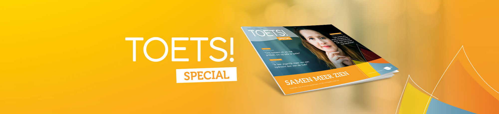 De spiksplinternieuwe editie van Toets! Special is beschikbaar. Het thema ‘Samen Meer Zien’ staat centraal. In deze editie vind je weer een flinke dosis inspiratie, tips en ervaringsverhalen. Aan het woord komen onder anderen; Ester Gould, documentairemaker, Jacquelien Bulterman, auteur en onderwijskundige, Sharon Boughanem, teamleider bovenbouw op Het Zuiderlicht College en Dr. Janneke Sleenhof, promovendus en docent Nederlands. Ook spreken we in deze editie weer een aantal leerlingen over hun ervaring met toetsing op school.